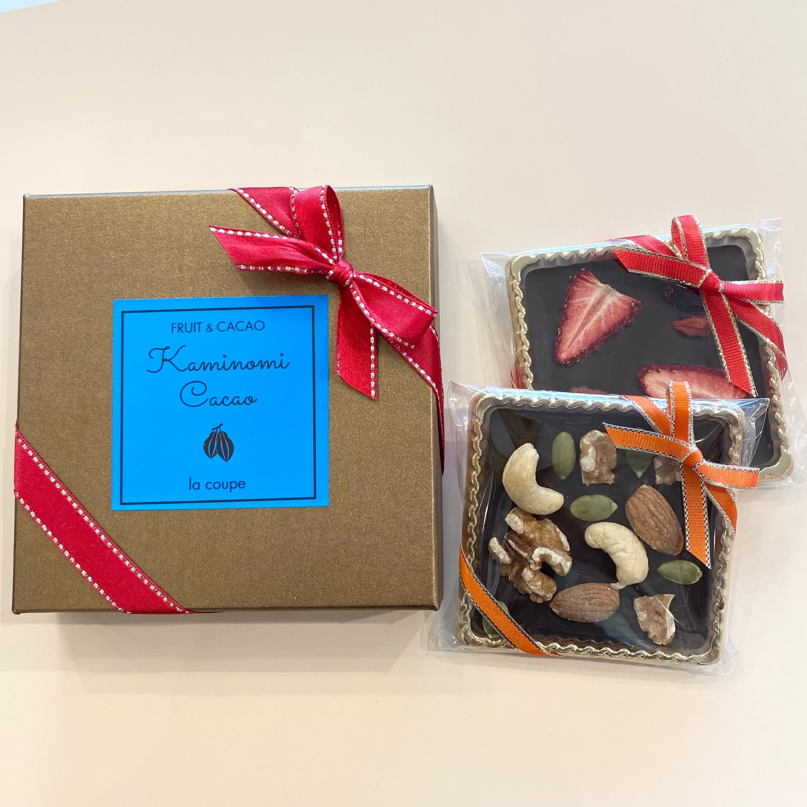 75%のフルーツ酵素ショコラ、人気のナッツとイチゴの2枚をボックスに入れました。