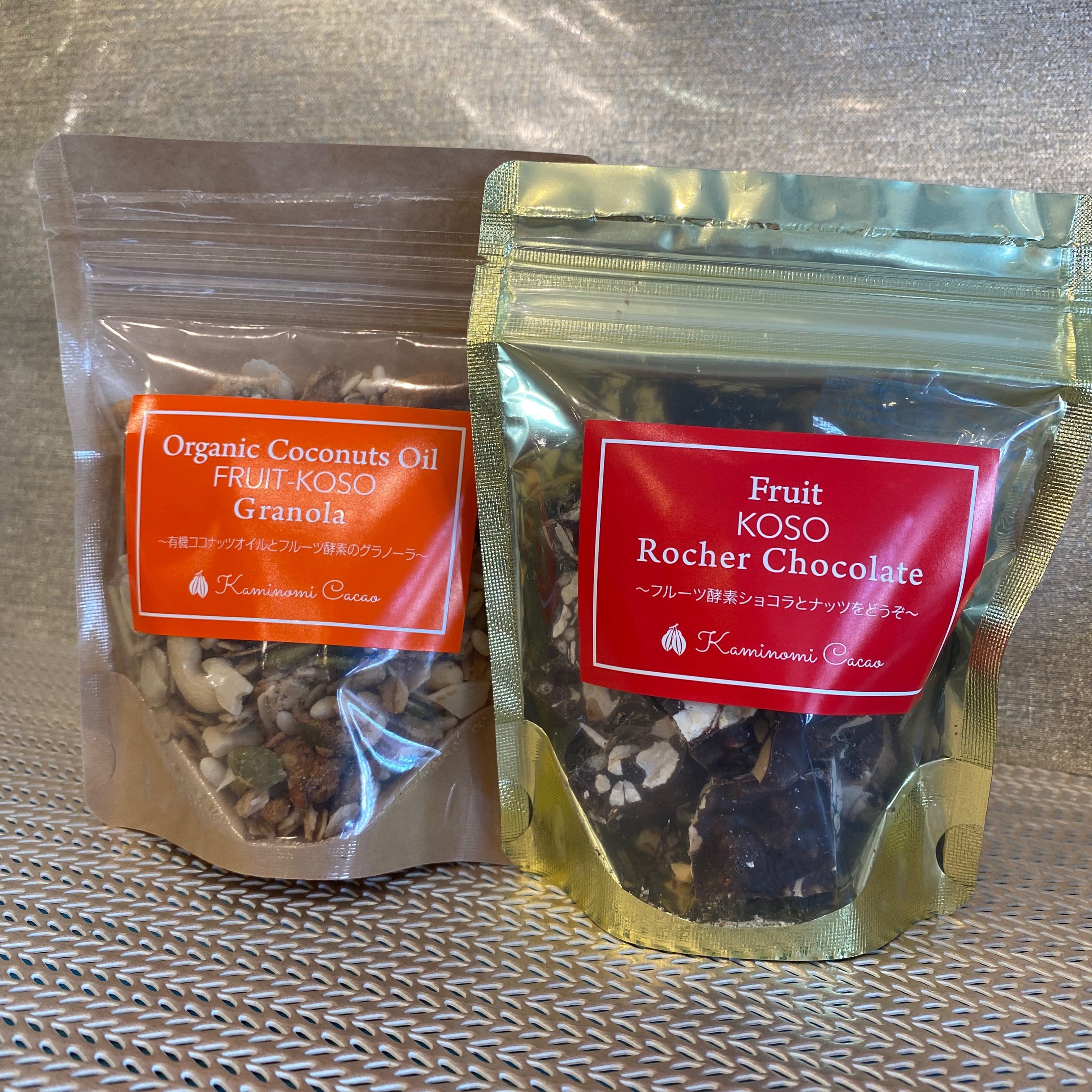 フルーツ酵素ロシェショコラは、75%のビターなショコラにナッツがザクザク。また、ココナッツグラノーラは、ヘルシー志向の方にぴったりの素朴な味わいが自慢の一品。手作りで丁寧に作られたサクサクの食感がたまらなく、朝食やおやつにも最適です。